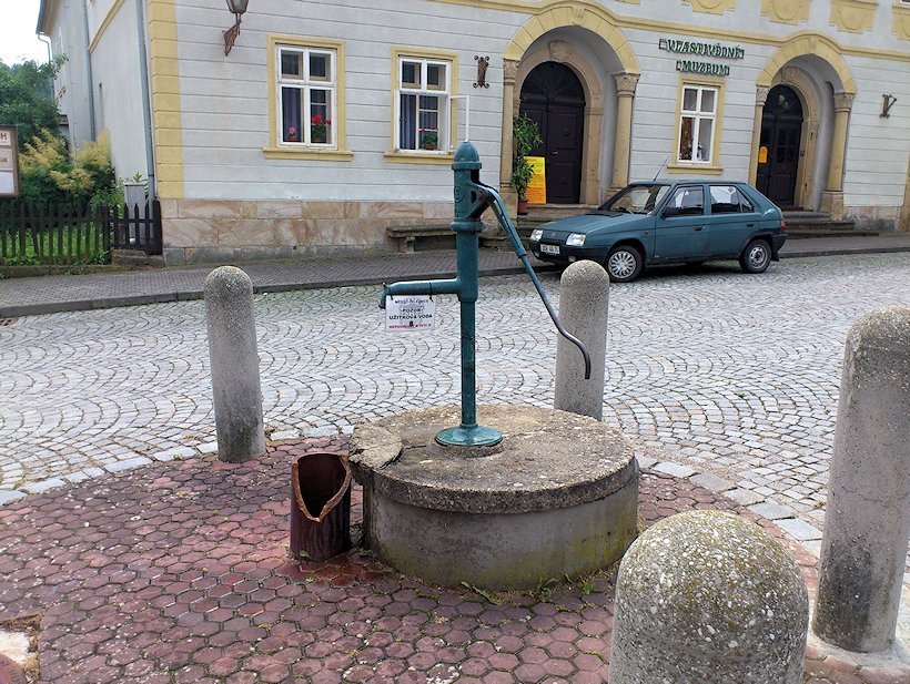 Studna je uprostřed Muzejního náměstí.